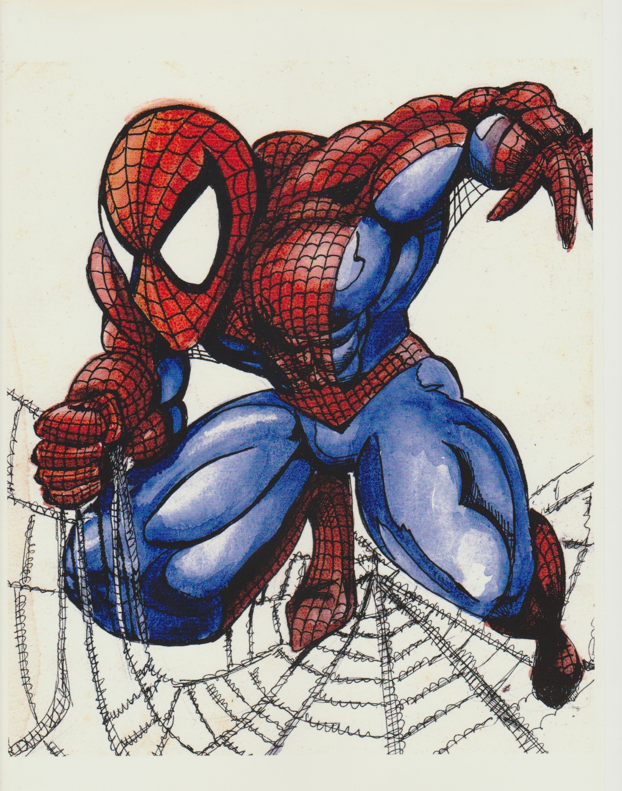 The boy would continue drawing throughout his adolescence, producing amazing works such as this illustration of Spider-man with banana fingers.