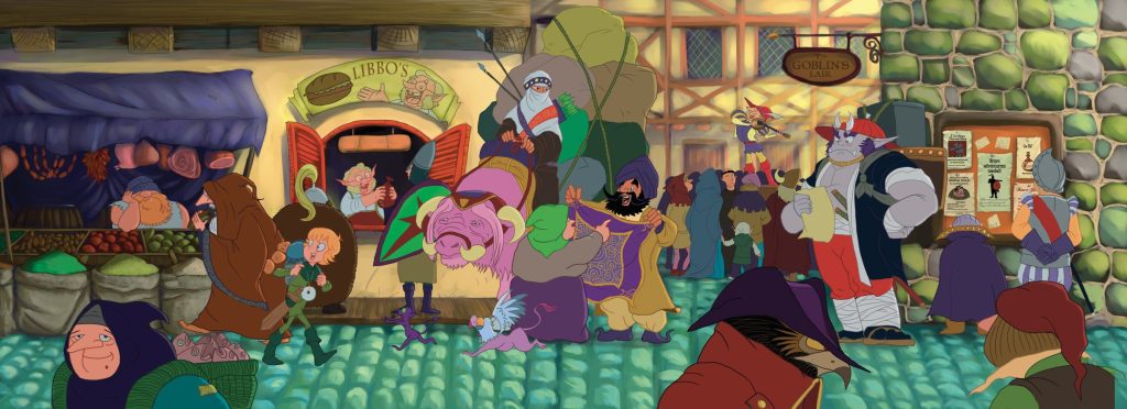 Based on a concept created by me and my then-co-writer Jeffrey Lawrence. As the initial form of the book is an interactive app with loads of animation, I decided that the illustrations should look like they came right out of an animated film.